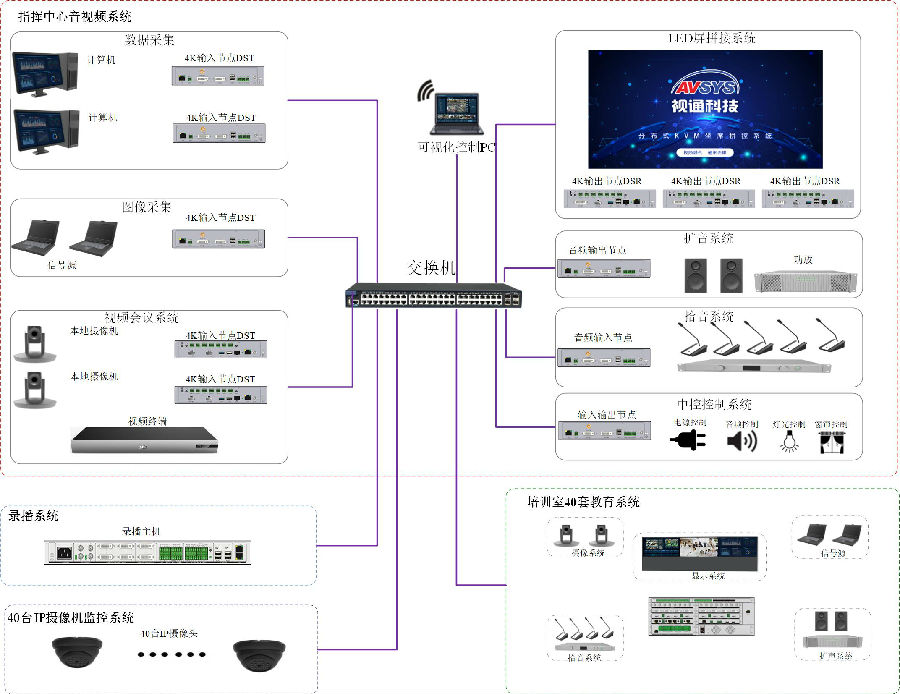 本次为满足河北某部队指挥中心应用,XKTY星空科技采用自主研发生产的4K分布式ADS、AVSRTM六合一的高清录播一体机和可视化管控平台,实现指挥中心系统的统一管控、音视频图像调度、会议通讯互动交流和录播等应用。