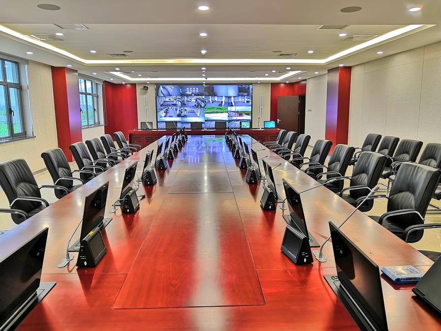 7、无纸化会议系统:采用15.6英寸超薄液晶升降屏