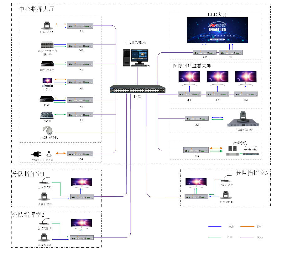 (1)本次为满足人防中心音视频指挥调度,音视频大屏共享协作、环境综合控制功能而建设。