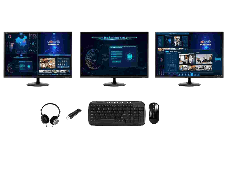 KVM代表着键盘(Keyboard)、显示器(Video)和鼠标(Mouse),即利用一组键盘、显示器和鼠标实现对多台设备的控制,在远程调度监控方面发挥着重要作用。但是随着现代化指挥、调度中心的应用,需要多套键盘、鼠标和显示器控制多台设备,同时还需要与大屏幕进行视频同步,XKTY星空科技在AS-ADS 4K分布式系统中加入了智能KVM坐席管理功能。